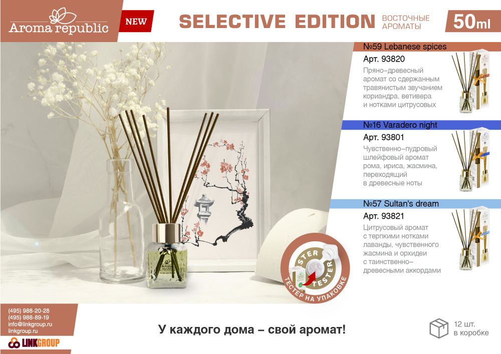 - Комплектность: Флакон с ароматической жидкостью 50 мл, палочки 8шт.