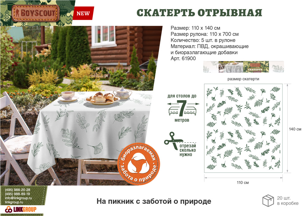 Размер рулона: 31 х 5 см Размер одной скатерти : 110х140 см. Толщина пленки: 23-25 мкм