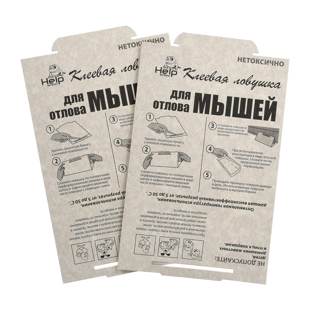 Высокоэффективное средство, простое в установке и утилизации. Для достижения максимального эффекта рекомендуется разместить в центре ловушки пищевую приманку – сыр, изюм, шоколад, а также собрать ловушку в виде домика (инструкция по сборке указана на упаковке). После попадания грызуна в клеевую ловушку необходимо просто выбросить использованное средство в мусорный контейнер. Ловушки безопасны для людей и домашних животных. Клеевой состав сохраняет фиксирующее действие не менее 50 дней. Не имеет запаха. Нетоксично. Товар сертифицирован.