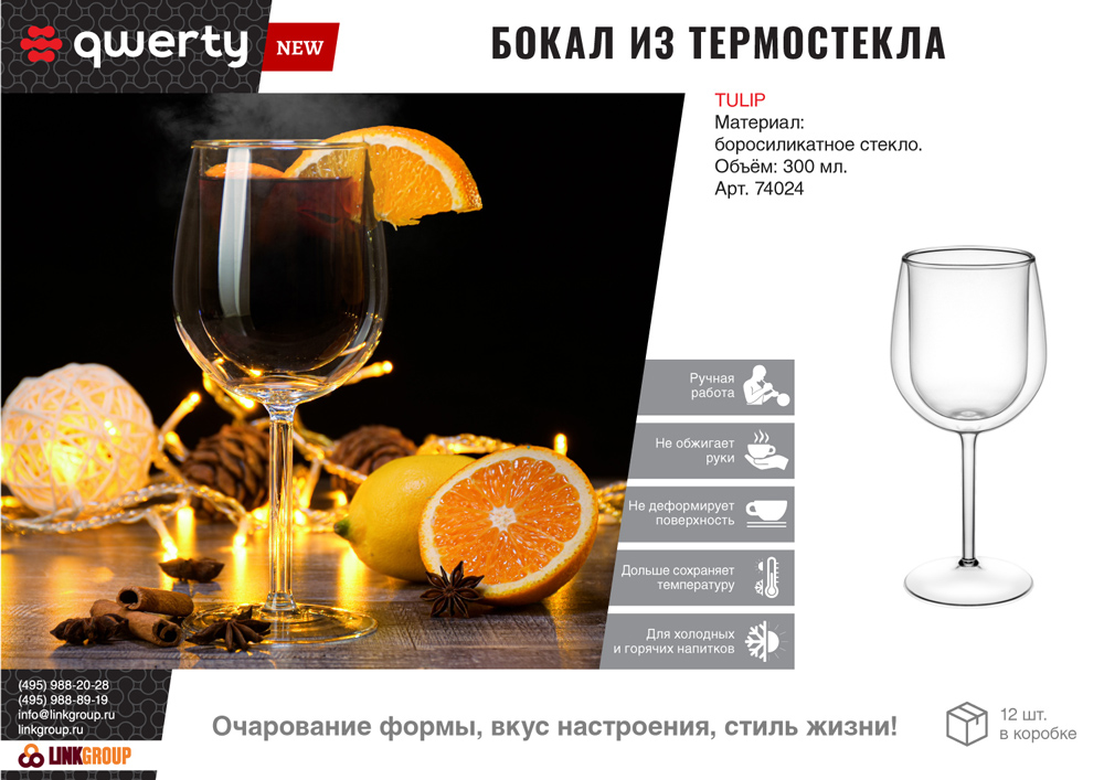 Размер 300 мл. Бокал стеклянный, ручной работы, с двойными стенками из боросиликатного стекла.