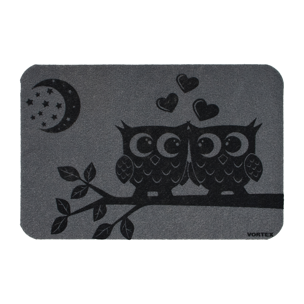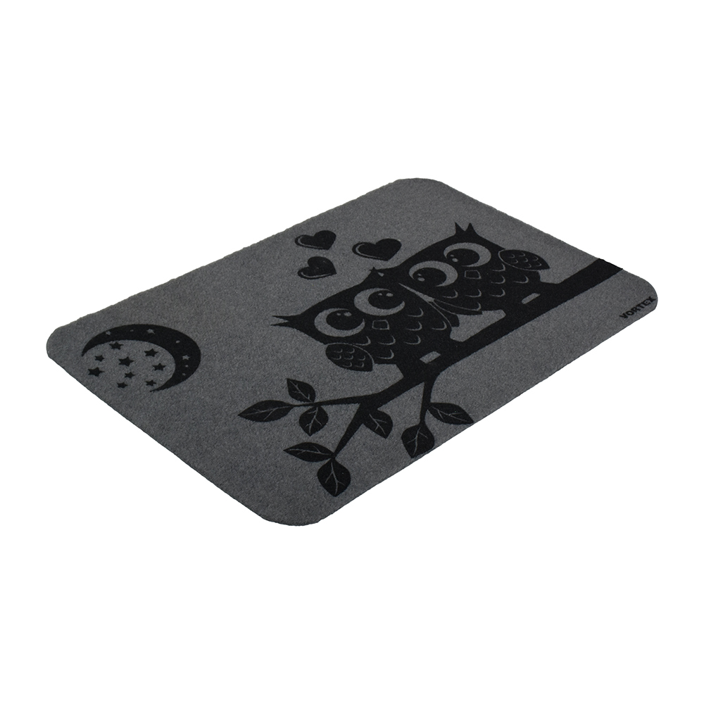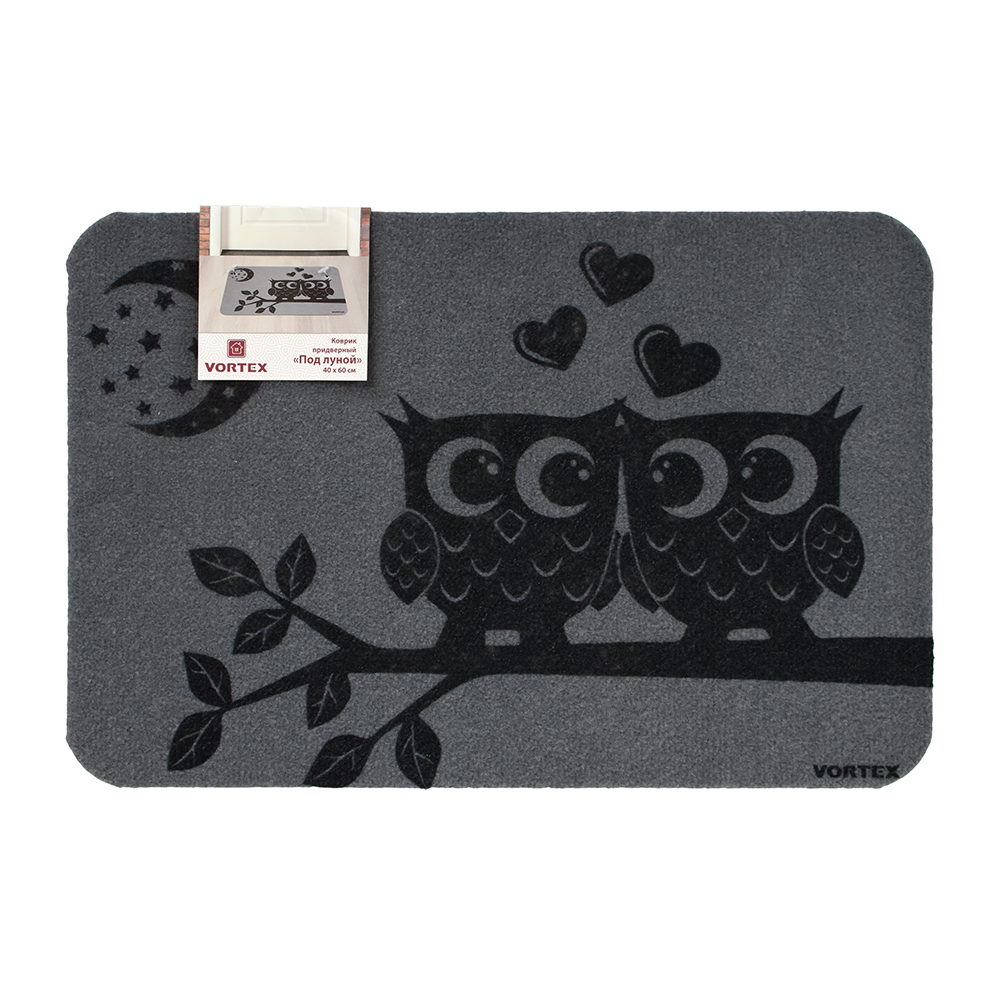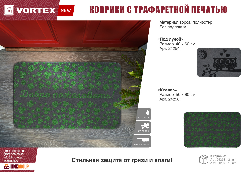 Очищает обувь от грязи и задерживает влагу при входе в помещение. Способ нанесения рисунка трафаретная печать. Размер: 40 х 60 см.