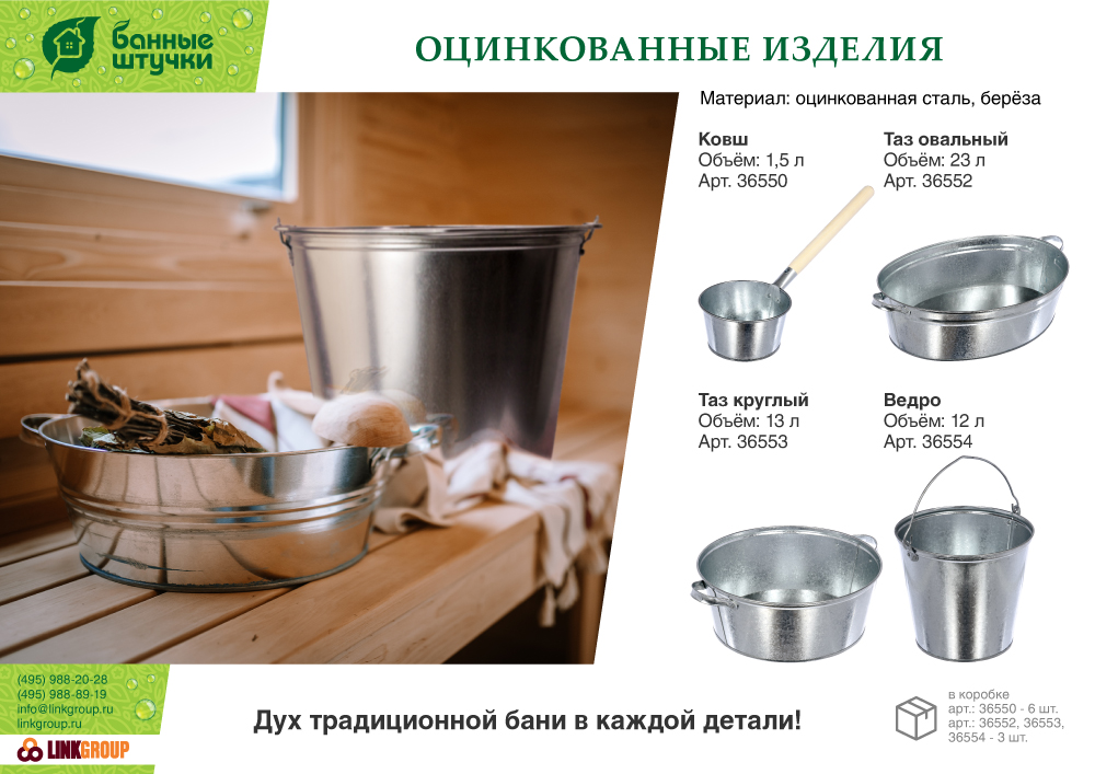 В баню невозможно ходить без определенных атрибутов, которые стали уже традиционными. В их число входят ведра, бадьи, ковши из различных материалов - медь, оцинкованная и нержавеющая сталь. Эти аксессуары уже считаются обязательными, и без них банная процедура будет неполной. В ведра и бадьях удобно замачивать веники, что очень пригодится любителям попариться.