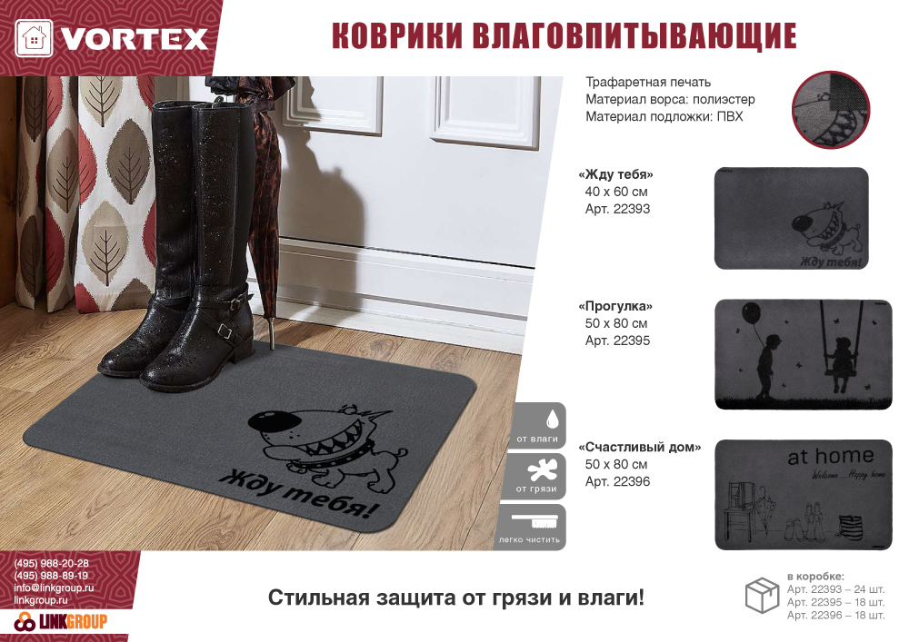 Очищает обувь от грязи и задерживает влагу при входе в помещение, не скользит. Способ нанесения рисунка трафаретная печать. Размер: 50 х 80 см.