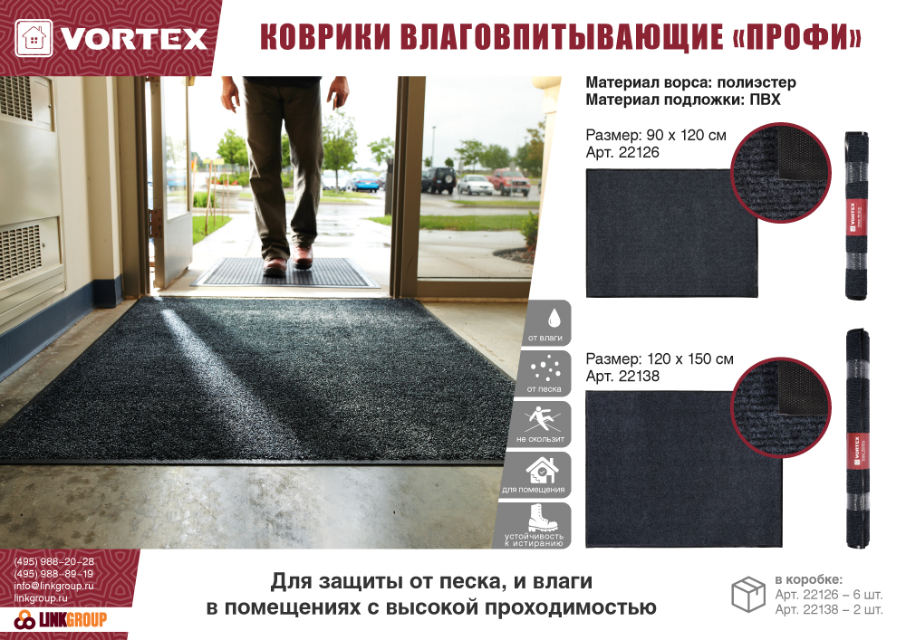 Имеет крупный износоустойчивый ворс. Подходит для использования в местах с повышенной проходимостью, не скользит. Размер: 90 х 120 см.