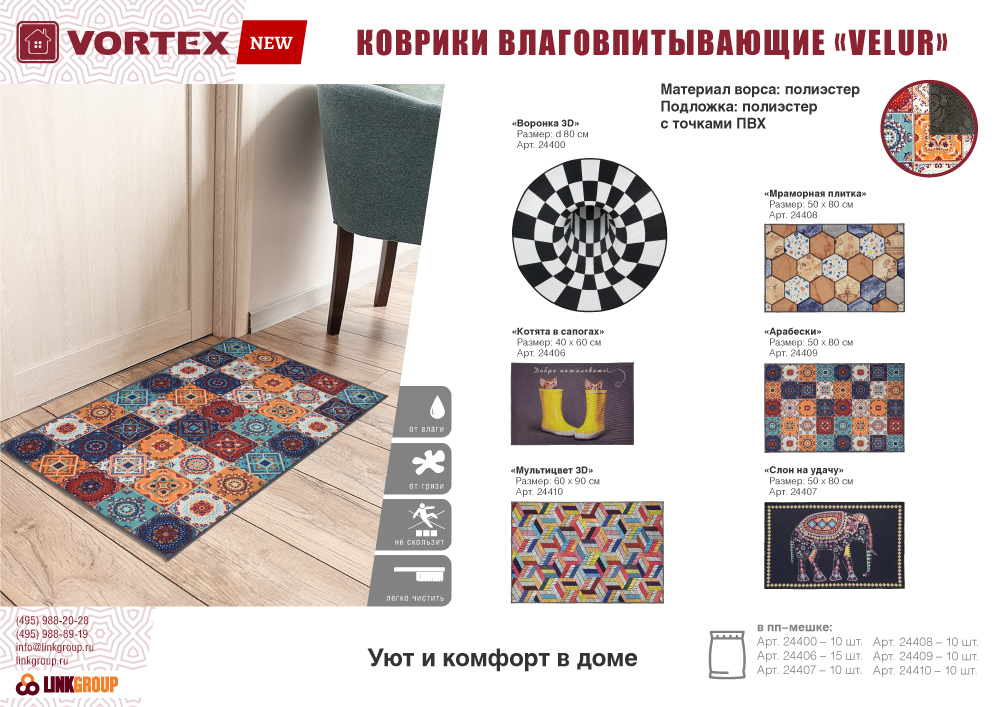 - Материал: ворс полиэстер, подложка полиэстер.