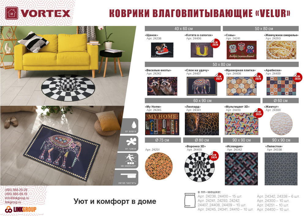 Очищает обувь от грязи и задерживает влагу при входе в помещение, не скользит. Способ нанесения рисунка фотопечать. Размер: 40 х 60 см.