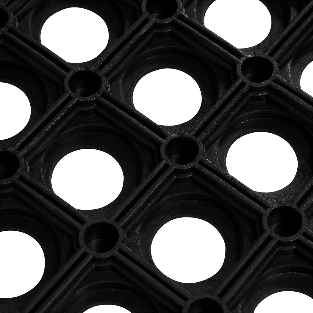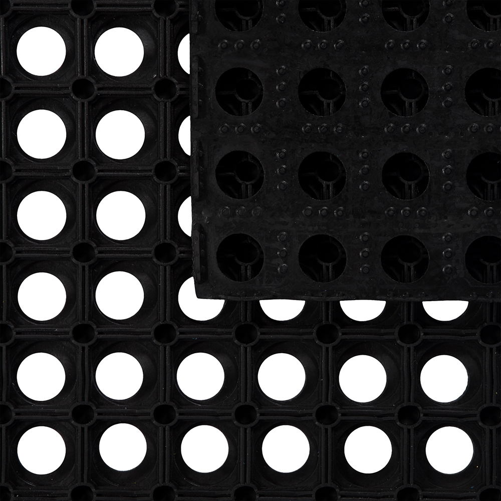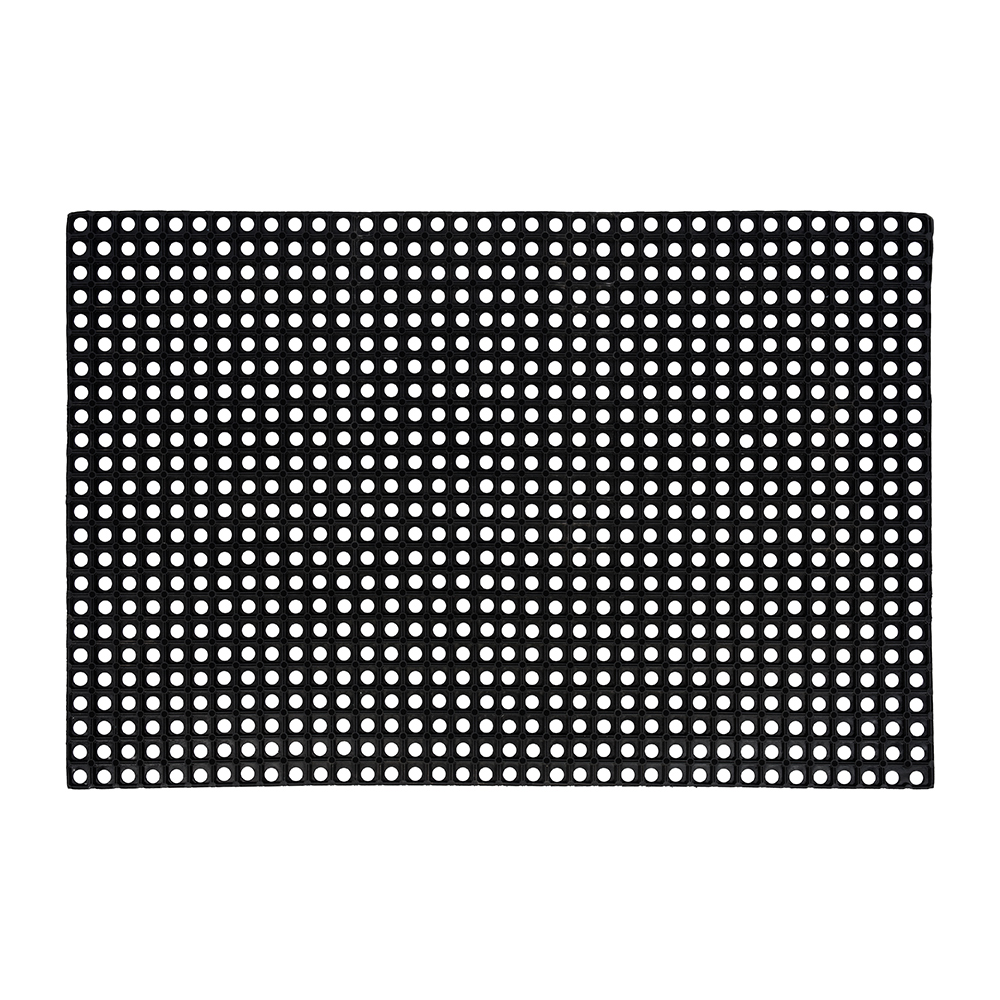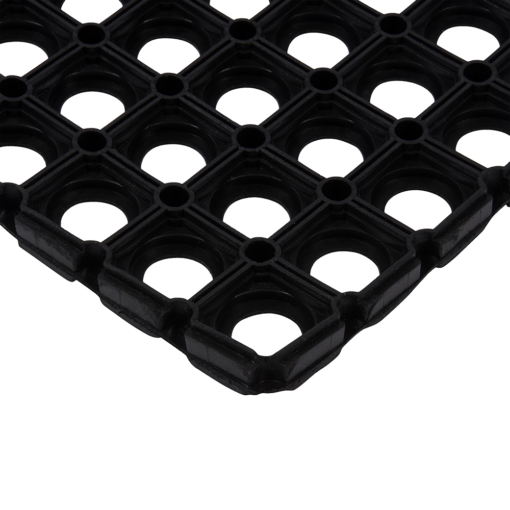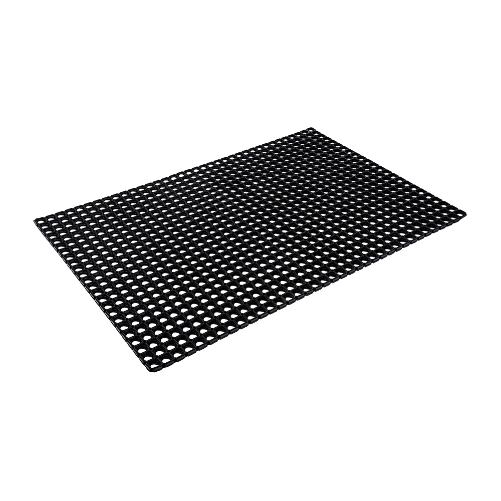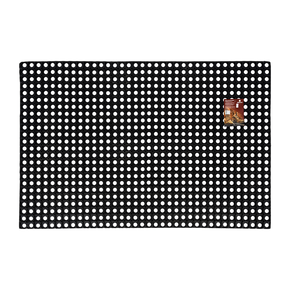 Структура коврика задерживает снег, крупные частицы грязи, препятствует скольжению. Устойчив к антигололедным реагентам и моющим средствам. Температурный диапазон: t° от + 50 до - 50 °С. Размер: 100 х 150 см, высота 2,2 см.