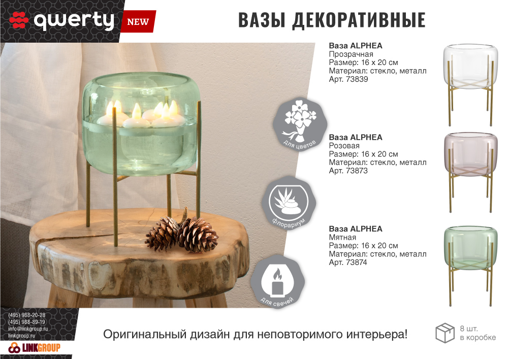 - Комплектность: Стеклянная ваза на матовой подставке