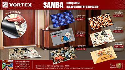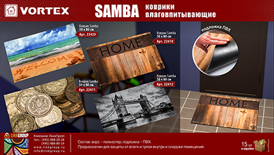 Коврик влаговпитывающий "Samba" 60*90 см. "Добро пожаловать"