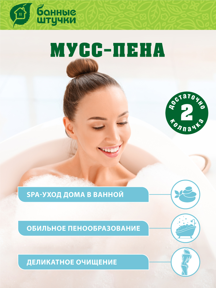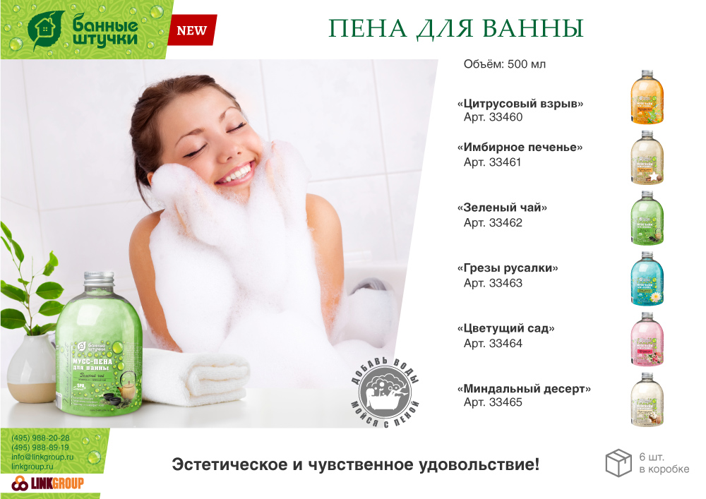 - Способ применения: Небольшое количество пены добавить под струю воды при наполнении ванны.