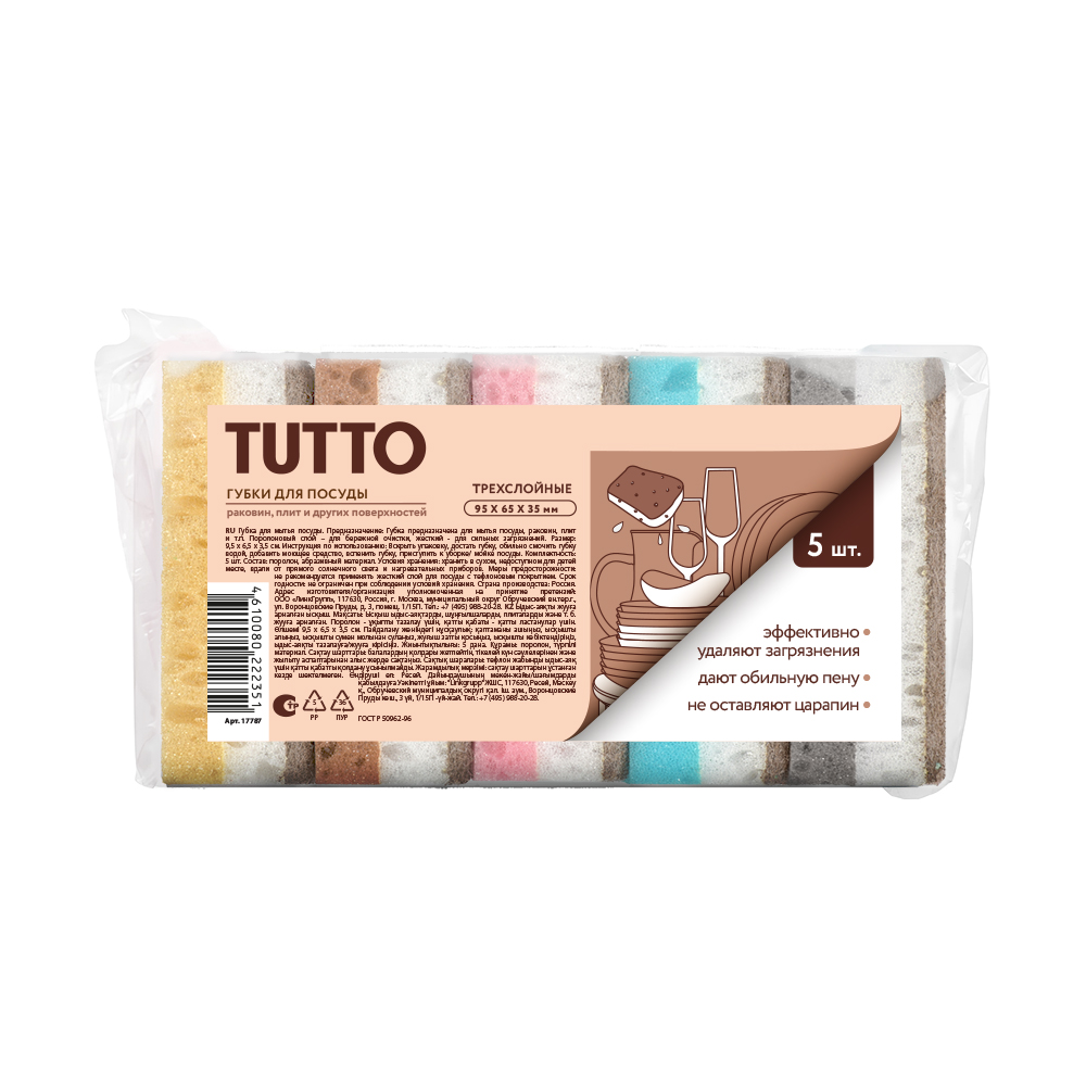 - Рекомендации по уходу: не рекомендуется применять жесткий слой для посуды с тефлоновым покрытием.
