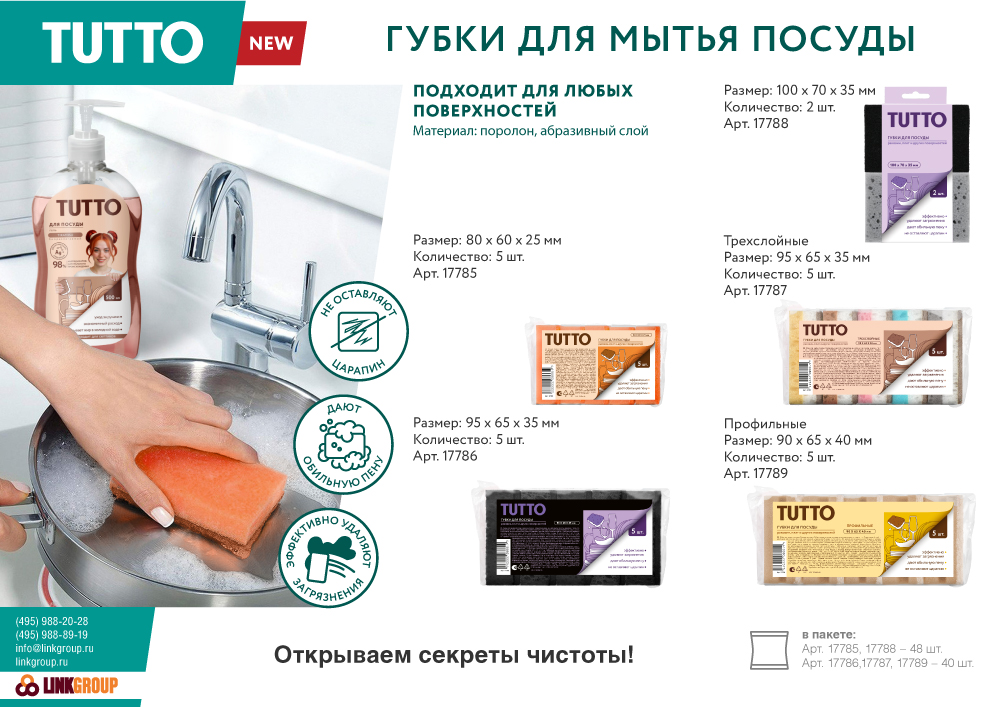 - Способ применения: вскрыть упаковку, достать губку, обильно смочить губку водой, добавить моющее средство, вспенить губку, приступить к уборке/ ммойке посуды.