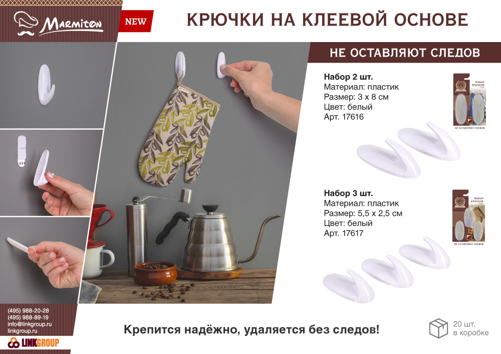 - Рекомендации по уходу: используйте крючок минимум спустя час после крепления. Не мыть в посудомоечной машине. Не давать детям.