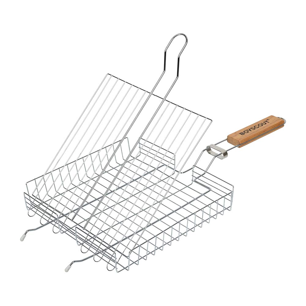 Размер: 50(+5) x 25 x 25 x 4 cм. Жарочная поверхность 25*25*4 см С помощью решёток для барбекю, изготовленных из высококачественной стали, Вы сможете приготовить различные блюда на мангале или на костре. Вы найдёте решётки для любых целей: для приготовления мяса, рыбы, морепродуктов, птицы или овощей. Приготовление еды с использованием решеток станет для Вас приятным удовольствием. Хромированное покрытие сделает процедуру чистки легкой и быстрой.