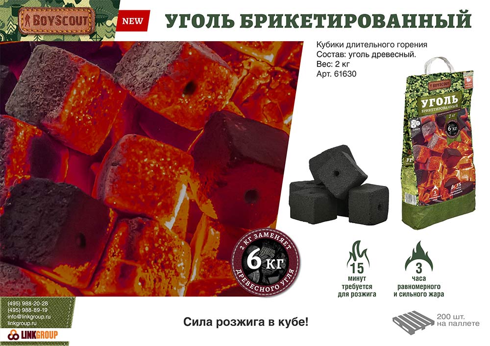 - Комплектность: Уголь брикетированный длительного горения 2 кг (форма кубики со стороной 3,5см)