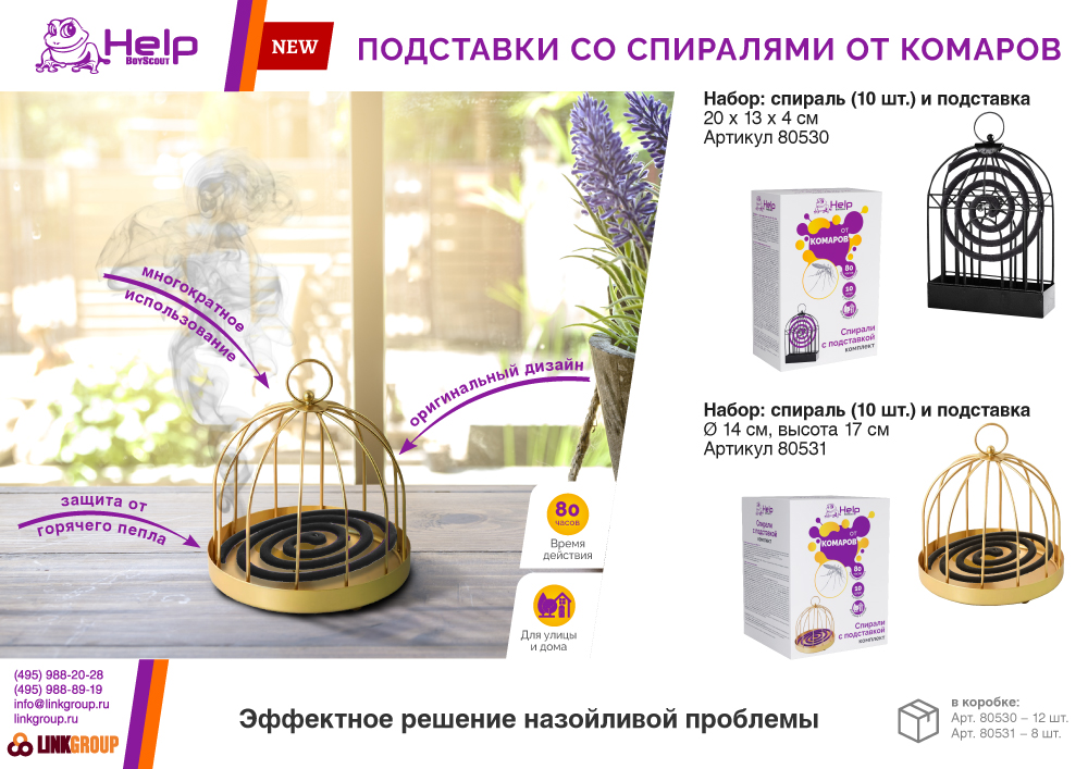 Репеллент. Спирали - популярное и эффективное средство для защиты от летающих насекомых на открытом воздухе. Идеальны для использования на дачах, верандах, в беседках. При сгорании спирали, действующее вещество попадает в воздух и убивает комаров, мошек, москитов. Продолжительность действия до 80 часов. Есть подставка в комплекте. Товар сертифицирован.