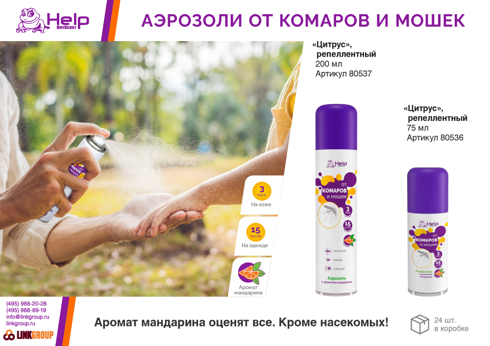 Репеллент. Аэрозоль против комаров, москитов, мошек и слепней для взрослых и детей (с 5 лет). Обеспечивает максимально мощный и продолжительный эффект отпугивания насекомых на открытом воздухе за счет оптимальной концентрации действующего вещества.