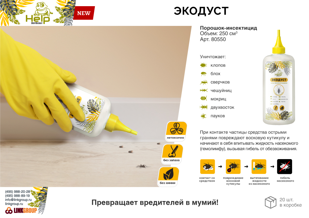 - Комплектность: Экодуст от насекомых 250 см3 - 1 шт.
